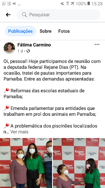 Depois de ser criticada novamente nas redes sociais por não pleitear problemas na educação como: abandono e fechamento de escolas do estado em Parnaíba,a vereadora Fátima Carmino-PT esteve com a Deputada Federal Rejane Dias -PT para apresentar pautas repetidas. A vereadora petista solicitou reformas urgente das escolas com problema em Parnaíba (pra não dizer abandonadas há anos).
