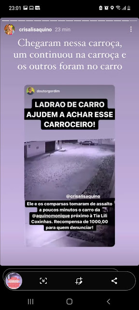 O fato é bastante curioso,pois segundo os relatos,um homem chegou por meio de uma carroça e logo em seguida os comparsas.Amigos de Crisalis,também influenciadores de Parnaíba,compartilharam imagens que estão ajudando a polícia militar e civil à investigar e prender os ladrões,Veja mais prints: